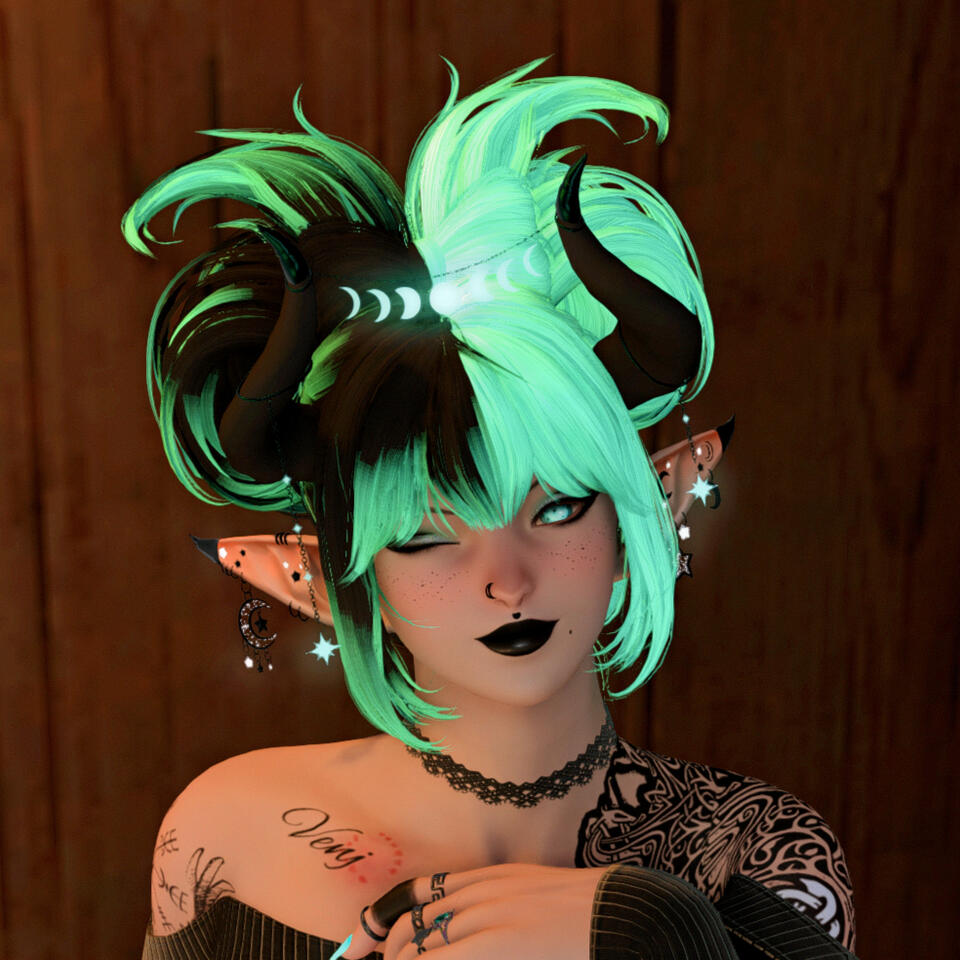 The inspiration behind cinnamon - A Rambit, half Viera/half ram - Results of an experiment from a Garlemald facility. An alliance attack allowed her to make a miraculous escape. She now roams Eorzea leaving nothing but joy and chaos in her wake. She is an instigator of sorts and is more than happy to converse with anyone, leaving them in a better mood than she found them. What could this social butterfly be hiding under her mask...